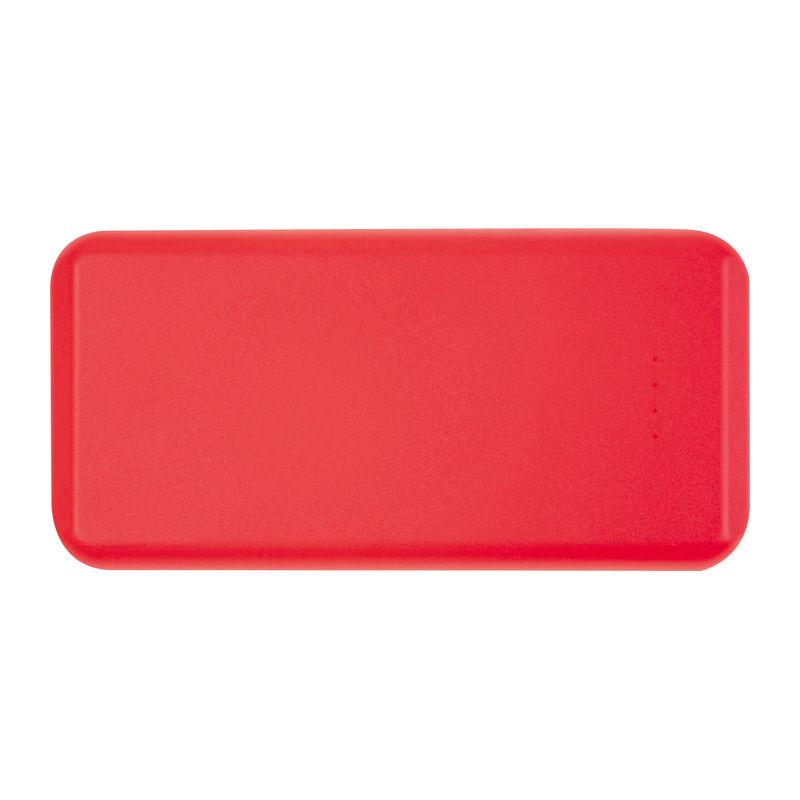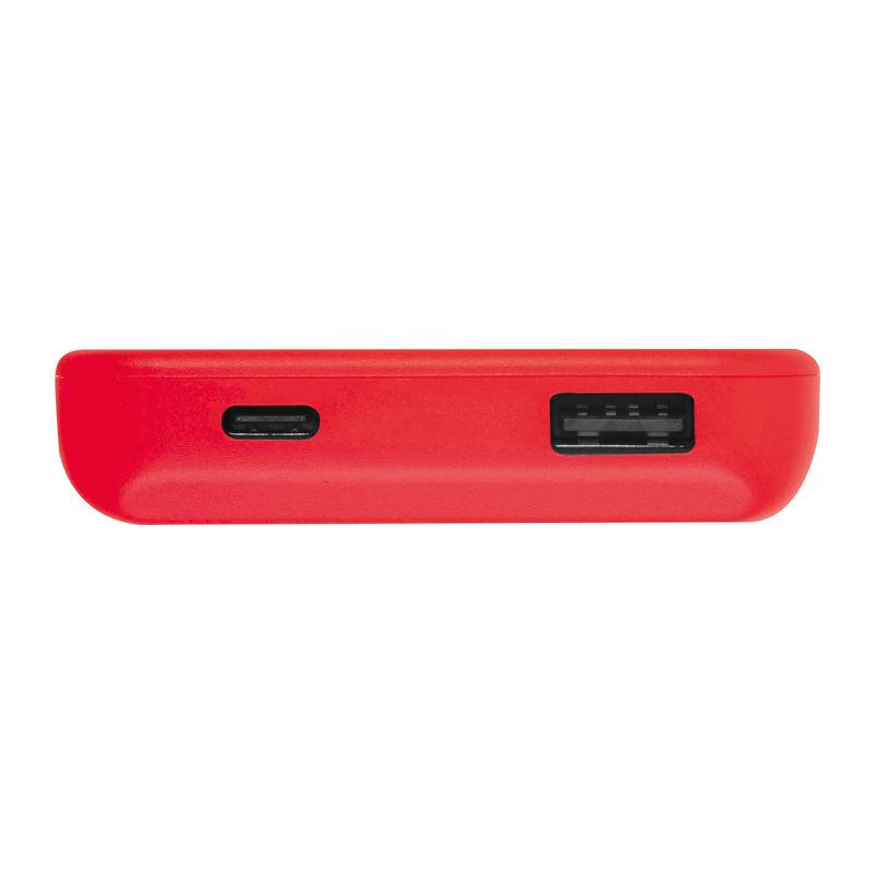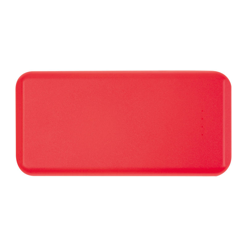 Power bank (10,000 mAh) made of recycled plastic (RABS) with two ports: USB-C in/out 5V/2.1A and USB-A out 5V/2.1A. Includes 50 cm charging cable.
