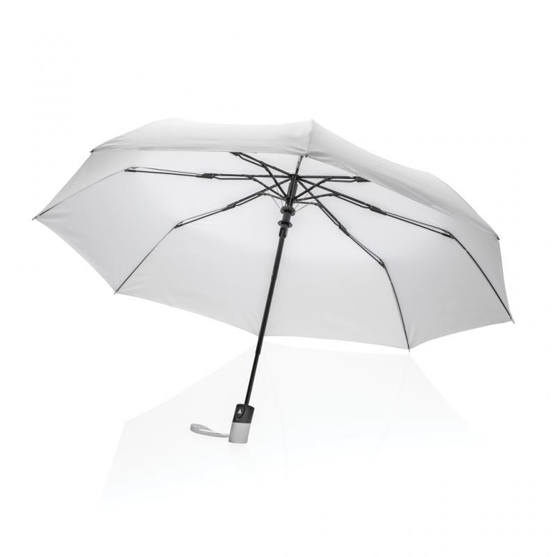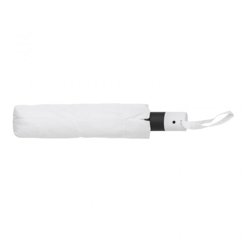 No greenwashing, but telling a true story about sustainability! This Impact umbrella is made with 190T RPET pongee with AWARE™ tracer. With AWARE™, the use of genuine recycled fabric materials and water reduction impact claims are guaranteed, by using the AWARE disruptive physical tracer and blockchain technology. Save water and use genuine recycled fabrics. With the focus on water 2% of proceeds of each Impact product sold will be donated to Water.org. Stay fashionable and dry with this 3 section auto open umbrella that opens at the touch of a button and features a compact design that fits perfectly in a purse or tote. Metal frame, fibreglass ribs with ABS handle. Stormproof. This umbrella canopy is made with 7,7 PET bottles (500ml). Water savings are based on figures when compared to conventional fibre. This calculated indication is based on reliable LCA data as published by Textile Exchange in their Material Snapshots 2016.