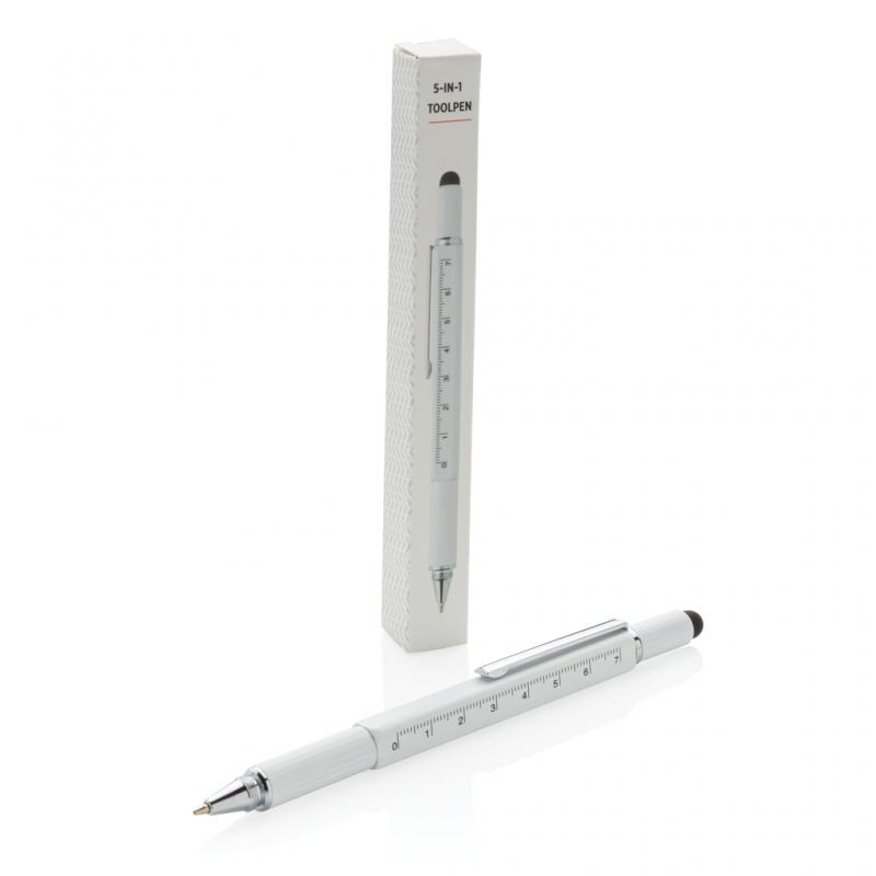 Multifunction pen with ruler (7cm) , spirit level, screw driver, stylus tip and ballpoint with blue writing ink (up to 400m) Made out of high quality brass material with aluminium clip.