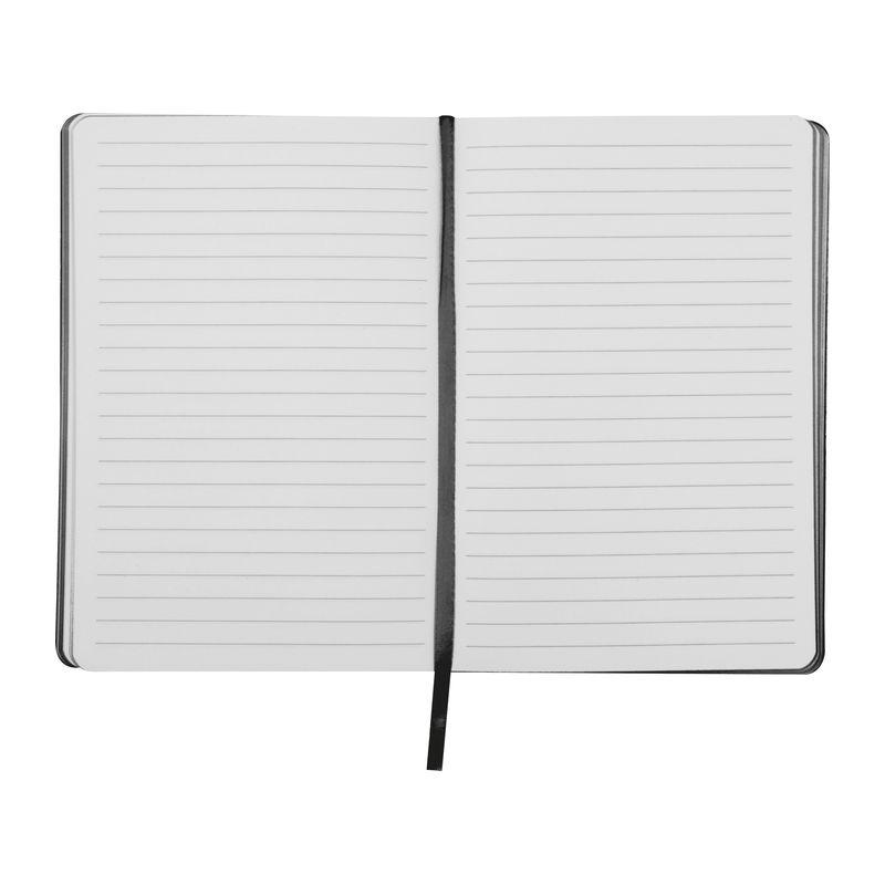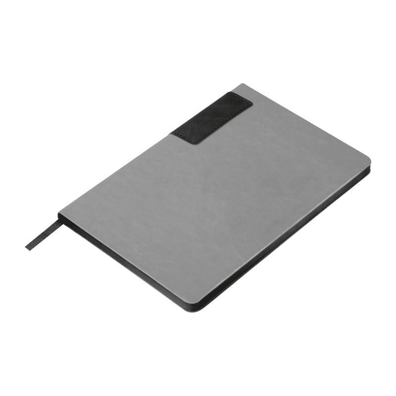 Gray A5 notebook made of recycled PU with 160 lined pages (80 sheets) from recycled paper and colored page edges.