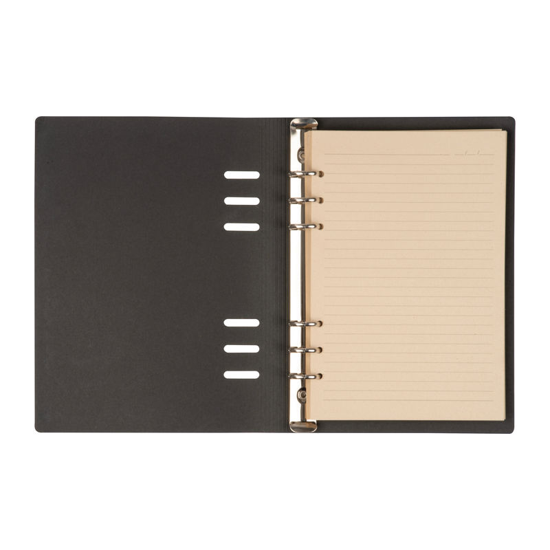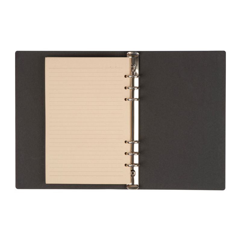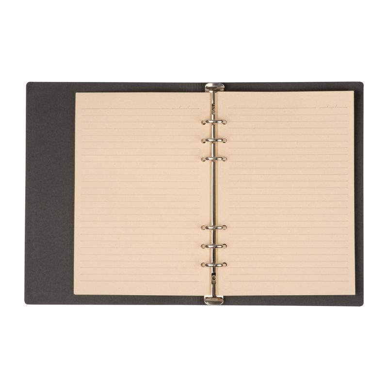 A5 ring binder with PU cover with 200 lined pages made of sugar cane. We will print your logo on the cover.