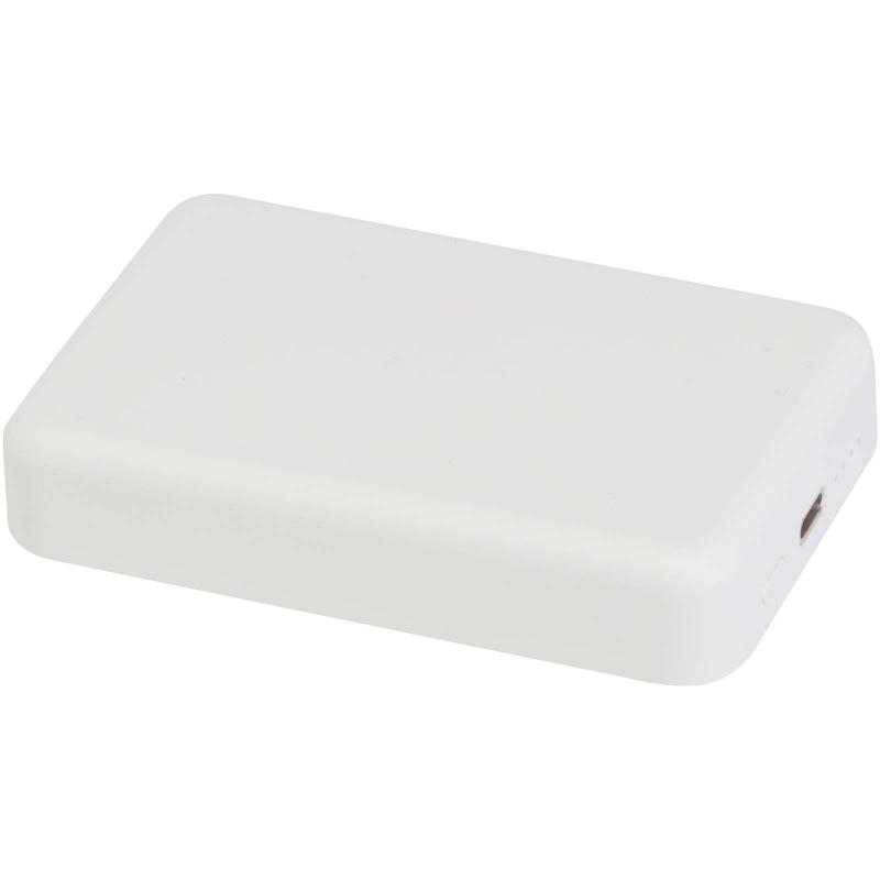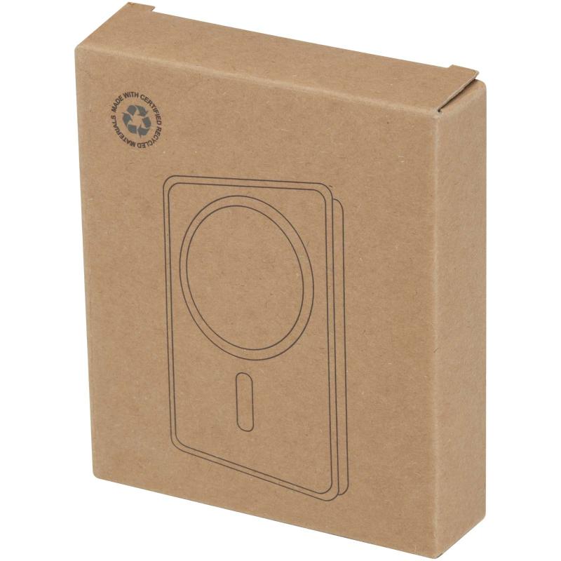 Charge smarter and faster with the compact Acrab 10.000 mAh power bank, made from recycled plastic. Enjoy up to 15W magnetic wireless charging for compatible smartphones, including iPhone 12 and newer. For other wireless charging-enabled devices without magnetic function, a metal ring sticker is included for secure alignment. The power bank also supports 20W wired Type-C fast charging, and the ability to charge two devices at once (wireless and wired), making it perfect for staying powered up on the go. A LED indicator keeps you updated on the charging/battery status.