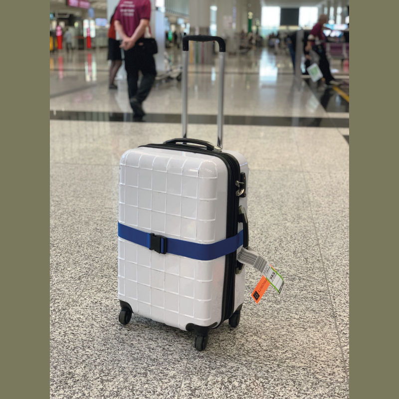 Adjustable polyester luggage strap (to 1,90m) with fastener. Your logo is printed on the strap (logo repeated). Only 1C print possible.
