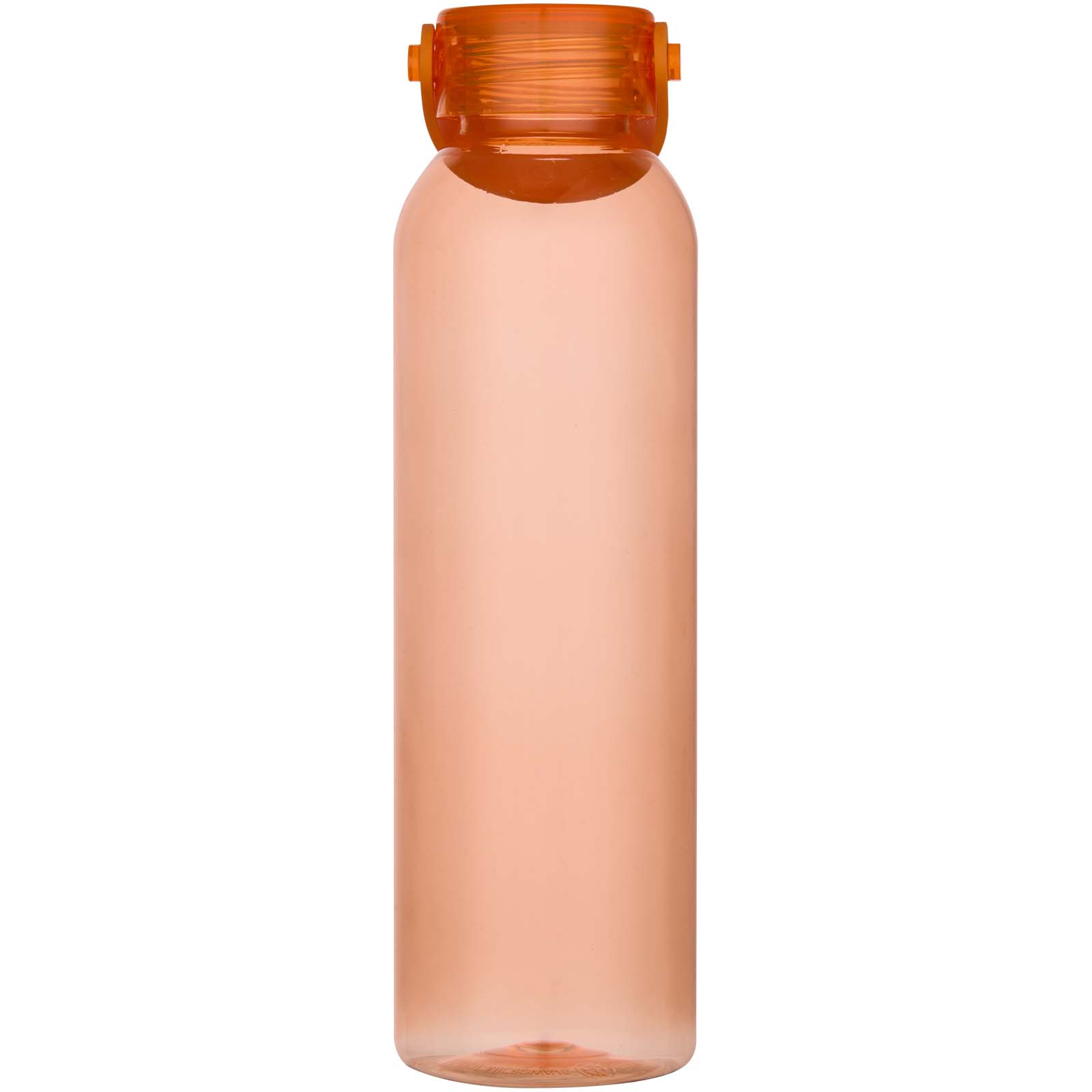 Water bottle made from RCS certified RPET, featuring a convenient silicone carry handle. In compliance with the EFSA approved PET recycling process. Volume capacity: 630 ml.