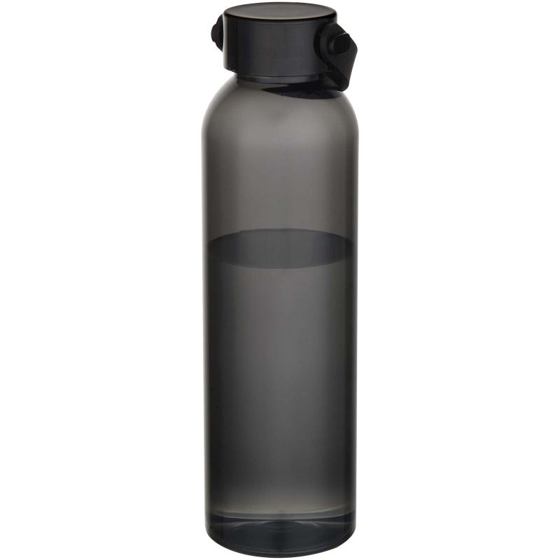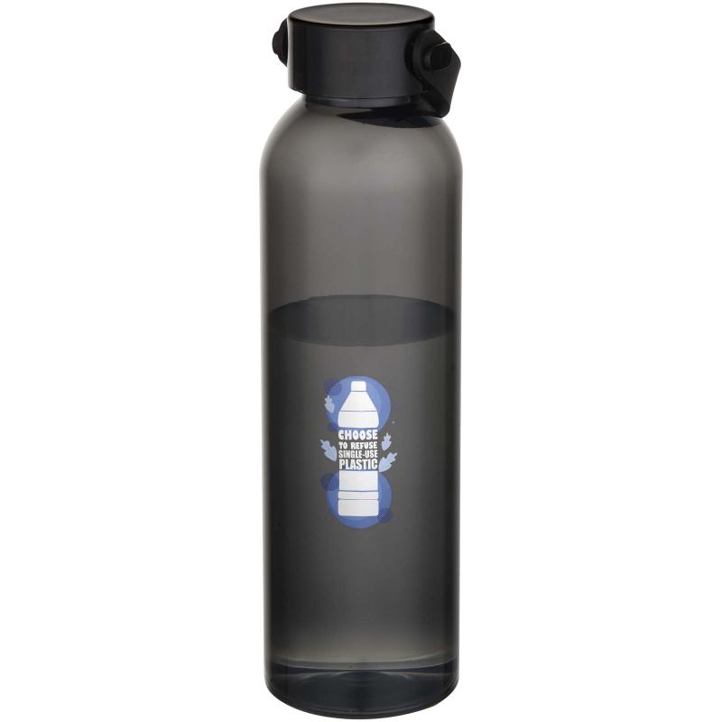 Water bottle made from RCS certified RPET, featuring a convenient silicone carry handle. In compliance with the EFSA approved PET recycling process. Volume capacity: 630 ml.