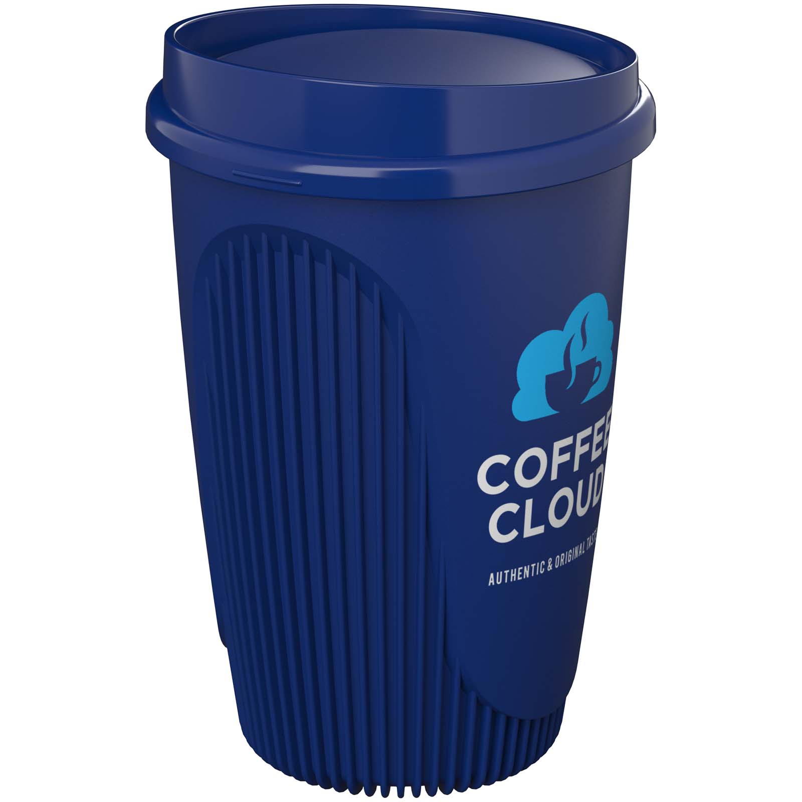 The Alto 350 ml tumbler is a sophisticated and stylish single-walled drinking vessel featuring insulating ridges for safe and comfortable handling. It has an elegant clip-on lid with an unobtrusive relief, providing a tactile method for locating the drinking spout. Both the lid and vessel are made of fully recyclable plastics. Enjoy your favourite hot beverages in both comfort and style.