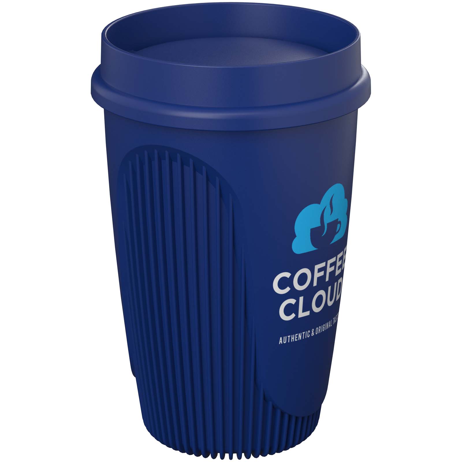 The Alto 350 ml tumbler with the unique 360° clip-on lid is a sophisticated and stylish single-walled drinking vessel featuring insulating ridges for safe and comfortable handling. The innovative 360° lid allows you to drink from any side of the cup, and enhances any drinking experience with a stronger aroma from your chosen beverage. Both the lid and vessel are made of fully recyclable plastics. Enjoy your favourite hot beverages in both comfort and style.