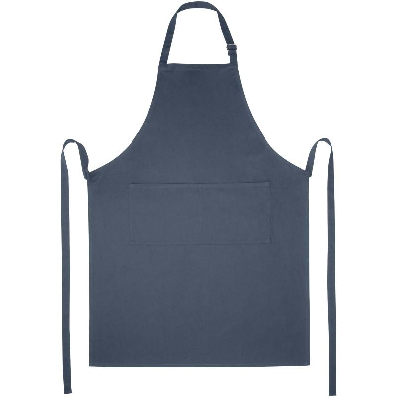Protecting beautiful clothes while cooking is easy with the Andrea apron. The apron consists of 240 g/m² twill (65% polyester and 35% cotton), which makes it thick and sturdy, while still soft and comfortable to wear. The two front pockets offer a quick and easy way to store kitchen essentials. The apron is adjustable with a buckle around the neck and a tie back closure, making it one-size-fits-all. Multiple large print options for maximum logo exposure.