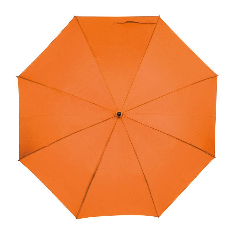 Automatic umbrella made of 190T pongee with fibreglass shaft and matt soft handle. We print your logo on one segment.