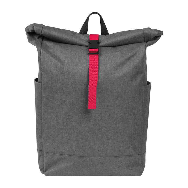 Trendy backpack with snowpolyester padded shoulder straps, coloured applications and a filling capacity of 29 liters. The backpack can be closed by simple rolling or folding. Your logo will be printed on the front.