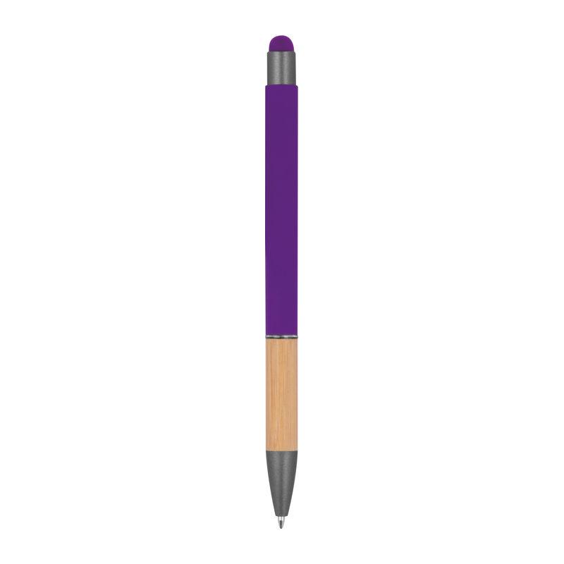 Ball pen made of aluminium with blue-writing refill, touch function, matte silver applications and a bamboo grip zone. Your logo will be engraved on the right side to the right of the clip.