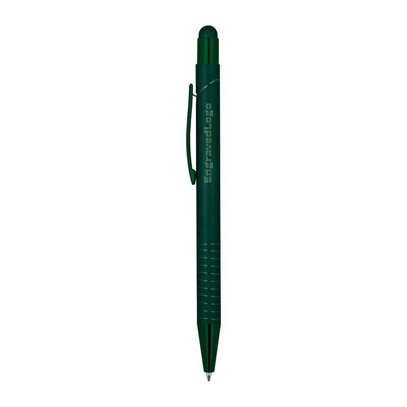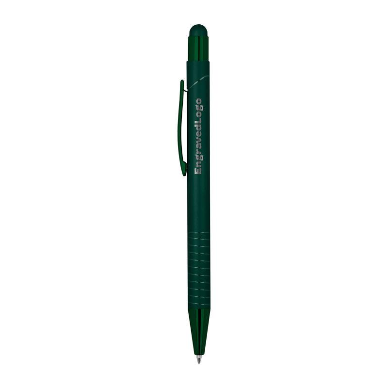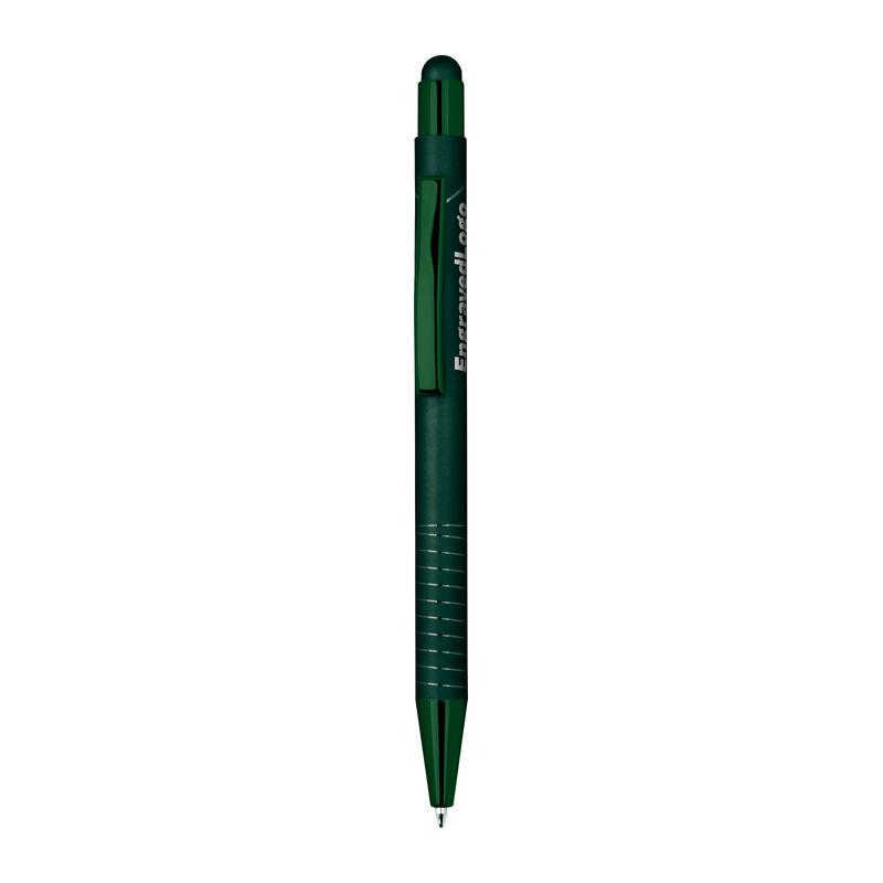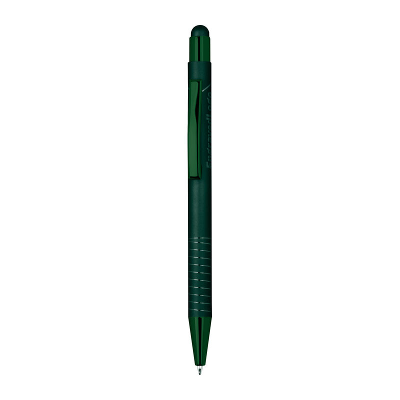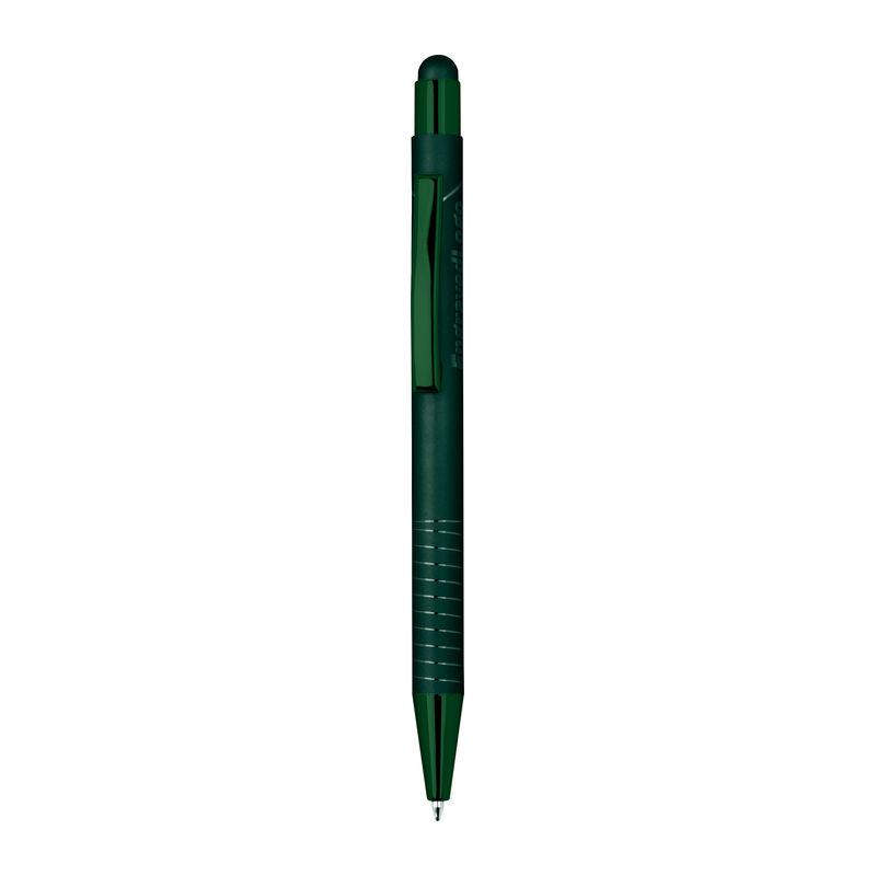 Ballpoint pen with integrated touch pen for smartphones and tablets. Features a glossy color-mirror finish, blue ink.