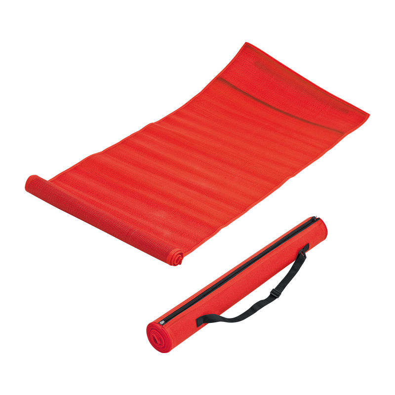 This beach mat (180 x 60 cm) in trendy colours is made of water and stain-resistant synthetic meshwork. The mat can be easily carried thanks to the integrated zipper and adjustable carrying strap. We will print your logo close to the carrying handle.