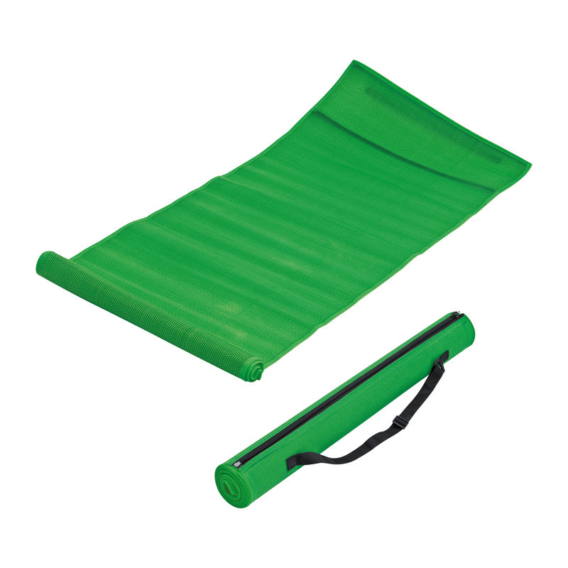 This beach mat (180 x 60 cm) in trendy colours is made of water and stain-resistant synthetic meshwork. The mat can be easily carried thanks to the integrated zipper and adjustable carrying strap. We will print your logo close to the carrying handle.
