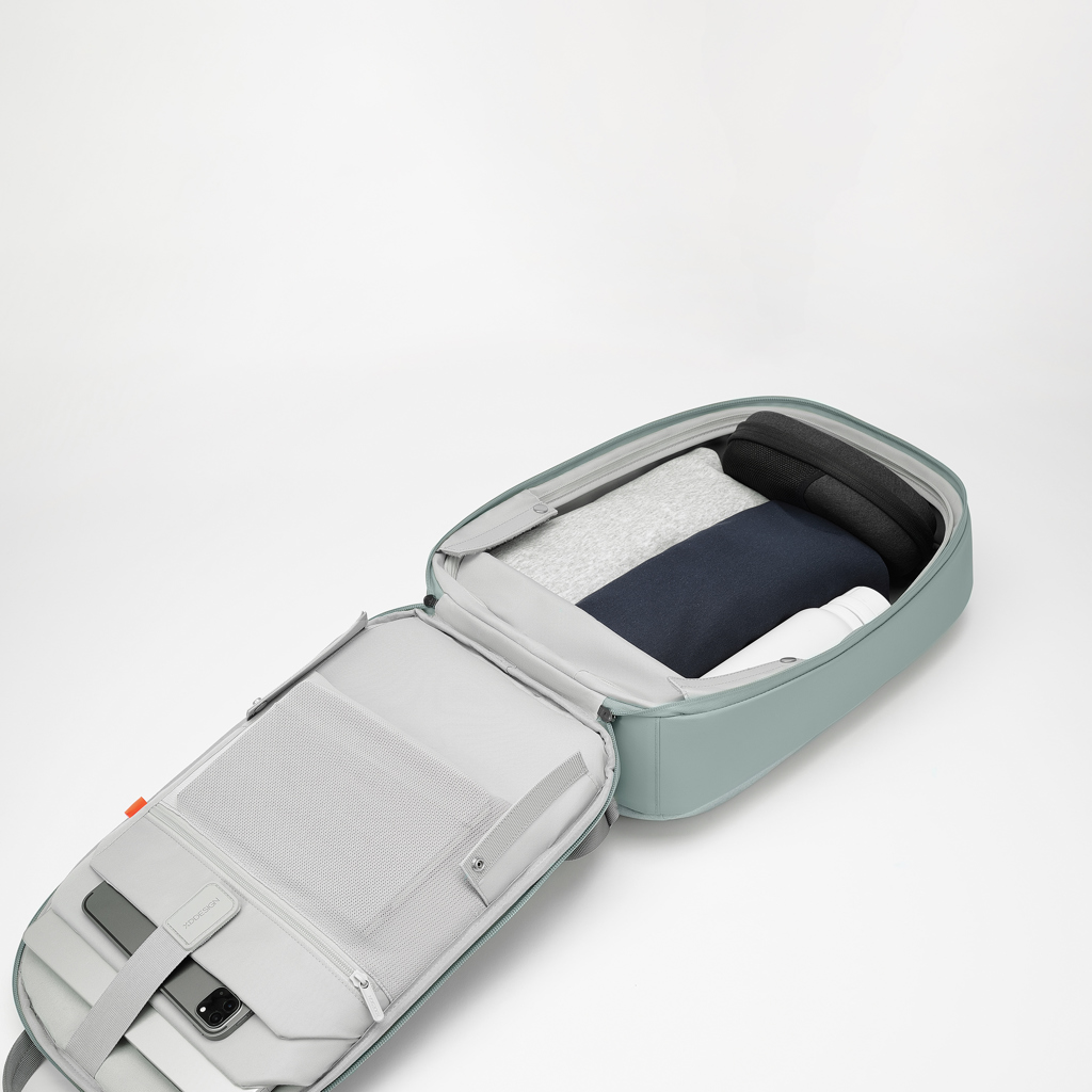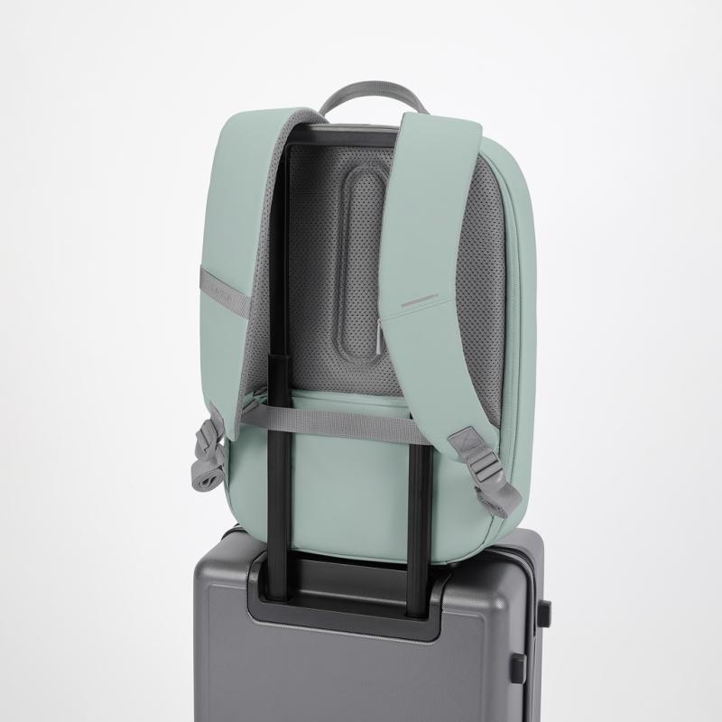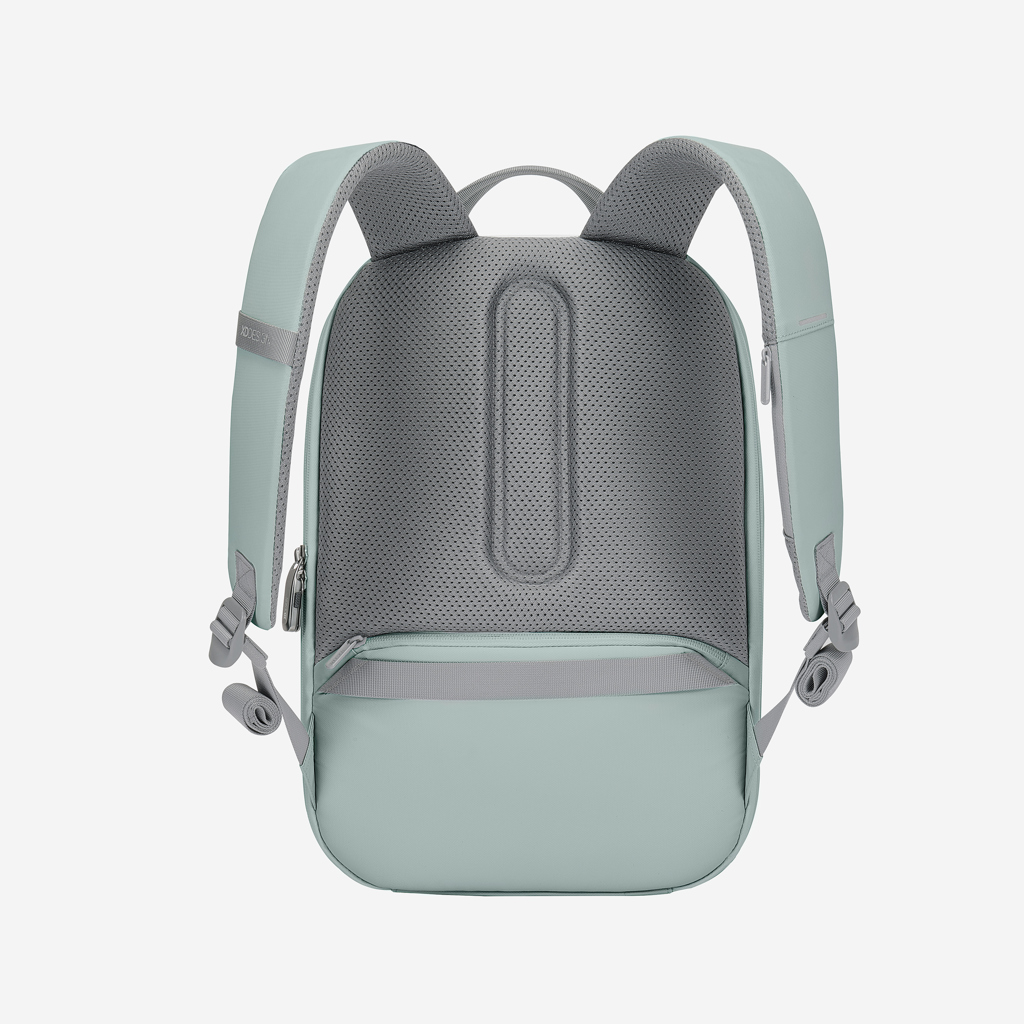 Experience modern design and enhanced security with the Bobby Edge. Engineered with an anti-theft design and a self-locking metal zipper puller, this backpack keeps your belongings safe. Its lightweight yet durable construction, along with a water-repellent exterior and waterproof zipper, ensures protection from the elements.Enjoy smart interior organisation for easy access to essentials. The addition of a discreet RFID-protected rear pocket and hidden tracking device pocket enhances convenience and security during your daily adventures. The Bobby Edge blends modern design with advanced security features, offering a stylish and protected journey for the modern explorer. Made from R-pet fabric with the AWARE™ tracer. With AWARE™, the use of genuine recycled fabric is guaranteed. 14% recycled content. Registered design®