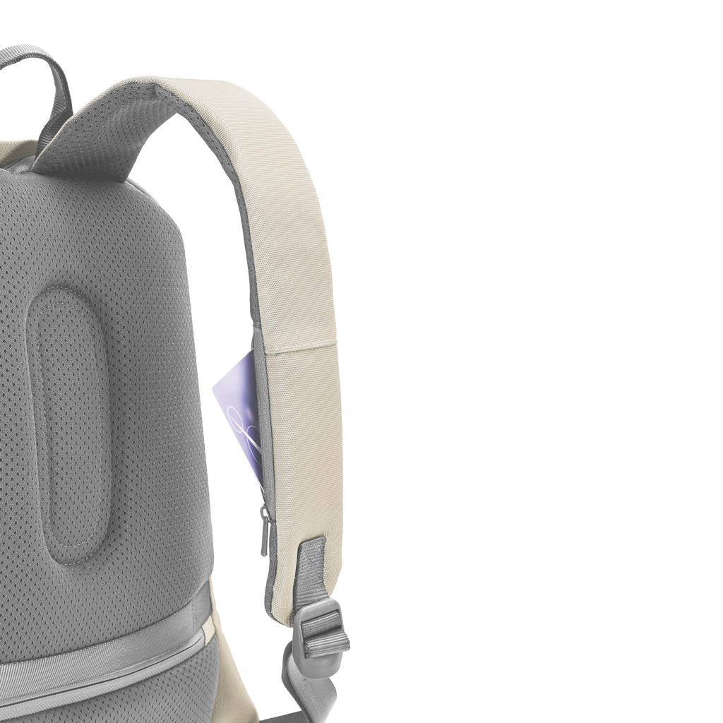 For university, school, work, or your next trip, the Bobby Soft Backpack is ready! The iconic Bobby anti-theft design with hidden RFID-protected pockets, no front access and hidden zippers is now complemented with a twist-lock zipper puller. In the main compartment, you can easily organise your gear with a padded 15.6" laptop compartment, notebook pocket, smart pockets and a keychain clip. The top of the backpack is expandable giving additional space. This backpack is also equipped with an integrated USB charging port and water-repellent material. Made from R-pet fabric with the AWARE™ tracer. With AWARE™, the use of genuine recycled fabric is guaranteed. 46% recycled content. Registered design®