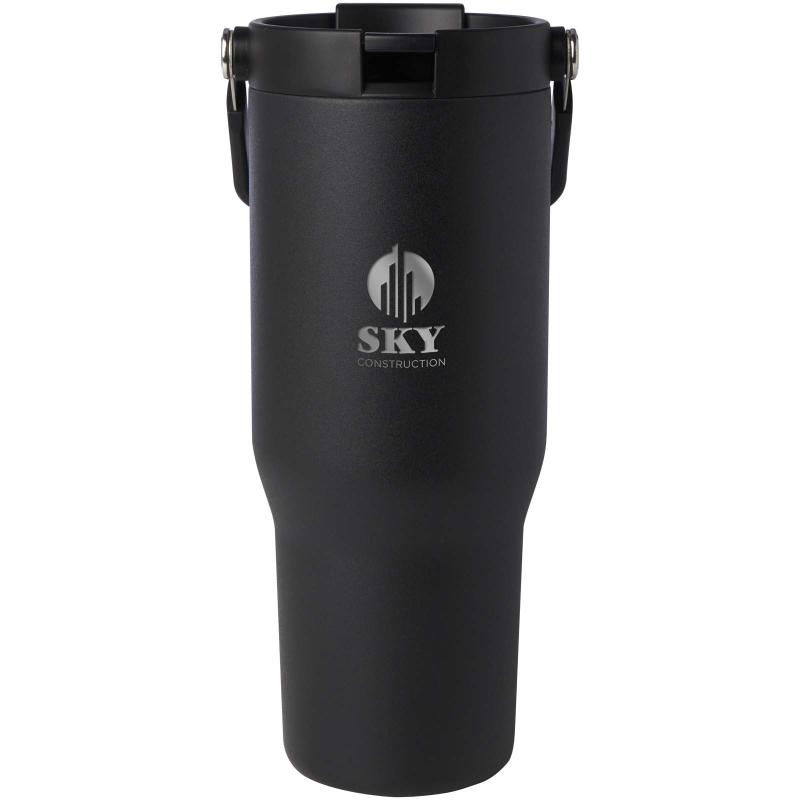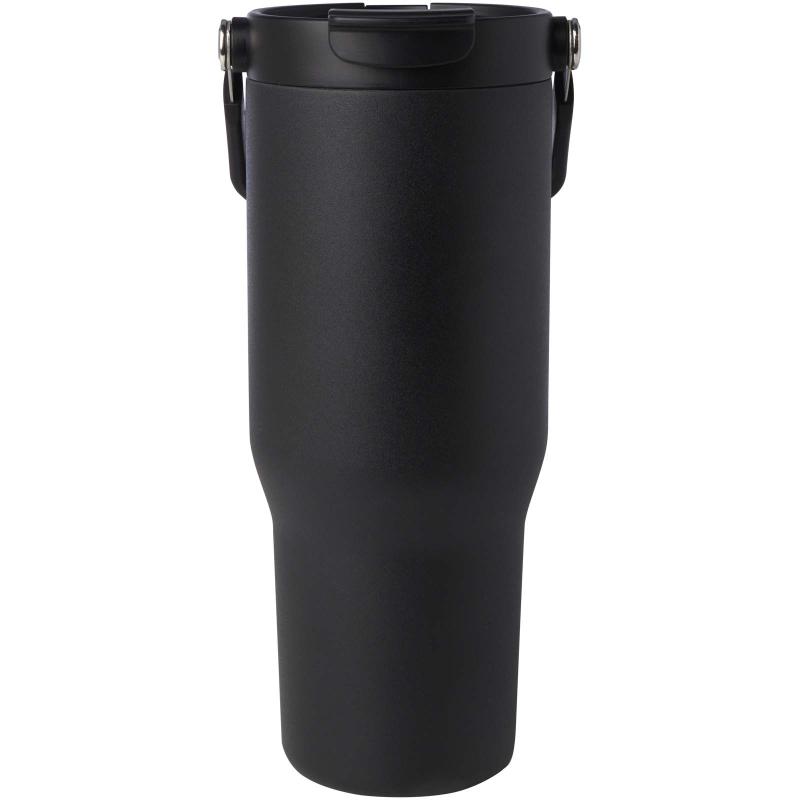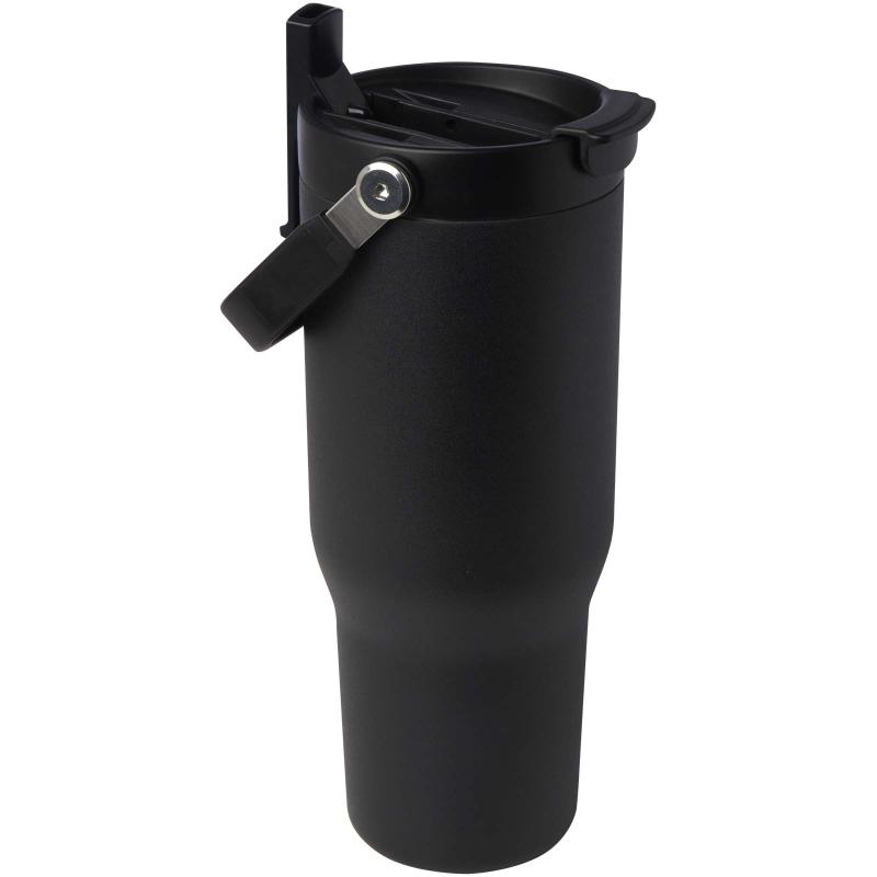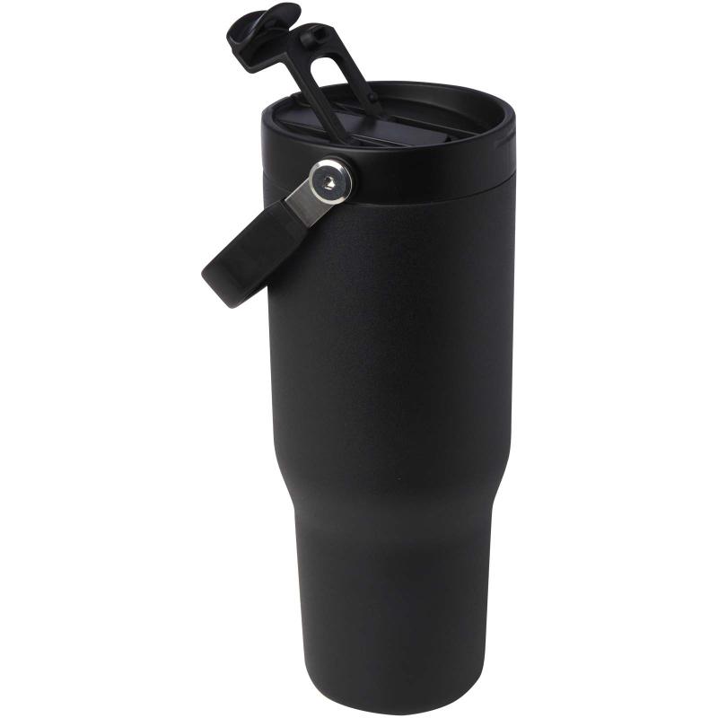The Bronx 900 ml tumbler is made from RCS certified stainless steel and has a double-walled vacuum construction with copper insulation. The lid has a dual function with a collapsible straw for easy sipping, and a flip-top opening with a convenient folding handle for effortless portability. Fits most car cup holders. Packed in a recycled cardboard gift box.