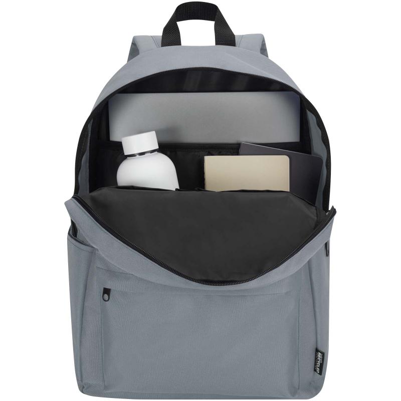 Made from water-repellent, GRS certified recycled polyester, the Byron city laptop backpack is your everyday companion for work, school, or city adventures. With a streamlined 16 litres capacity and a dedicated padded sleeve for laptops up to 14", it offers practical storage in a clean, modern design. Inside, you'll find smart organisational pockets to keep your gear in order, while two side pockets and a zipped front pocket provide quick access to essentials. Whether you're commuting or exploring the city, this backpack delivers style, comfort, and functionality every step of the way.