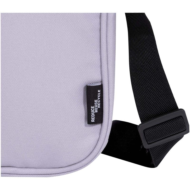 Practical and water-repellent crossbody bag made of GRS recycled polyester. It features a zipped compartment with a sleeve pocket inside to keep your everyday gadgets safely in place, a zipped front pocket for keys and valuable accessories, and an open sleeve pocket on the back for quick storage and access. With its adjustable high quality shoulder straps, the Byron crossbody bag is a perfect bag for everyday use with a minimal ecological footprint. PVC free.
