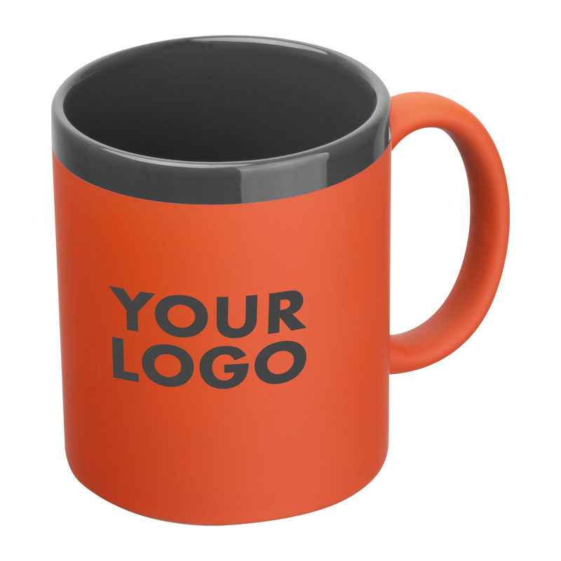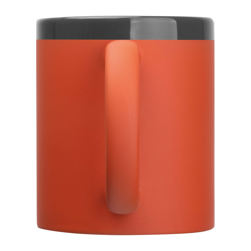 Ceramic mug with soft rubberized exterior and 300ml capacity.