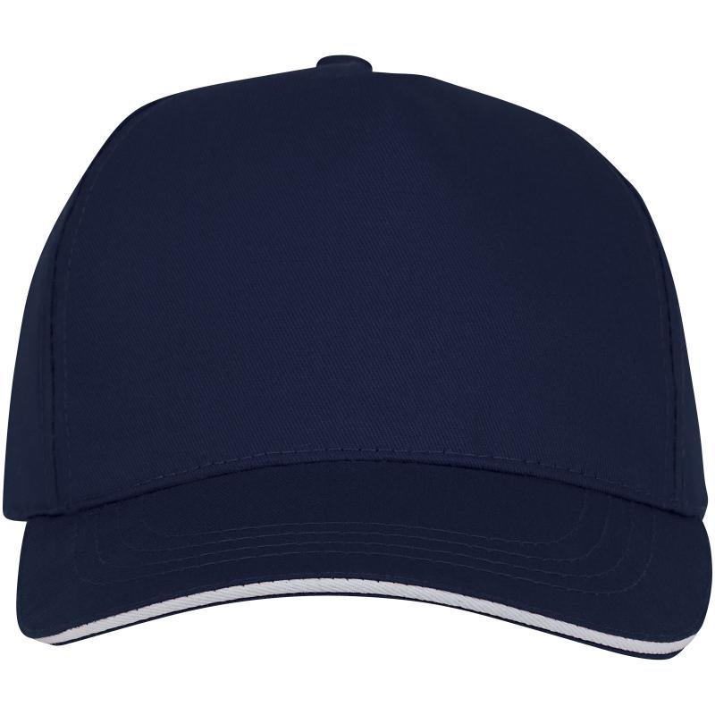 The Ceto 5 panel sandwich cap – style and practicality harmoniously combined. Made from 175 g/m² cotton twill, it offers not only durability but also a soft and breathable feel. Featuring a pre-curved visor and a sandwich design, the cap provides sun protection with a touch of elegance. With a structured front panel and cotton inside details, this cap boasts both sophistication and comfort. With a head circumference of 58 cm, it guarantees a tailored fit for a variety of head sizes. The fabric hook and loop fastener provide effortless adjustability, allowing to achieve the perfect fit. The Ceto cap is the ideal accessory for any occasion, whether it's a casual outing or an outdoor adventure.