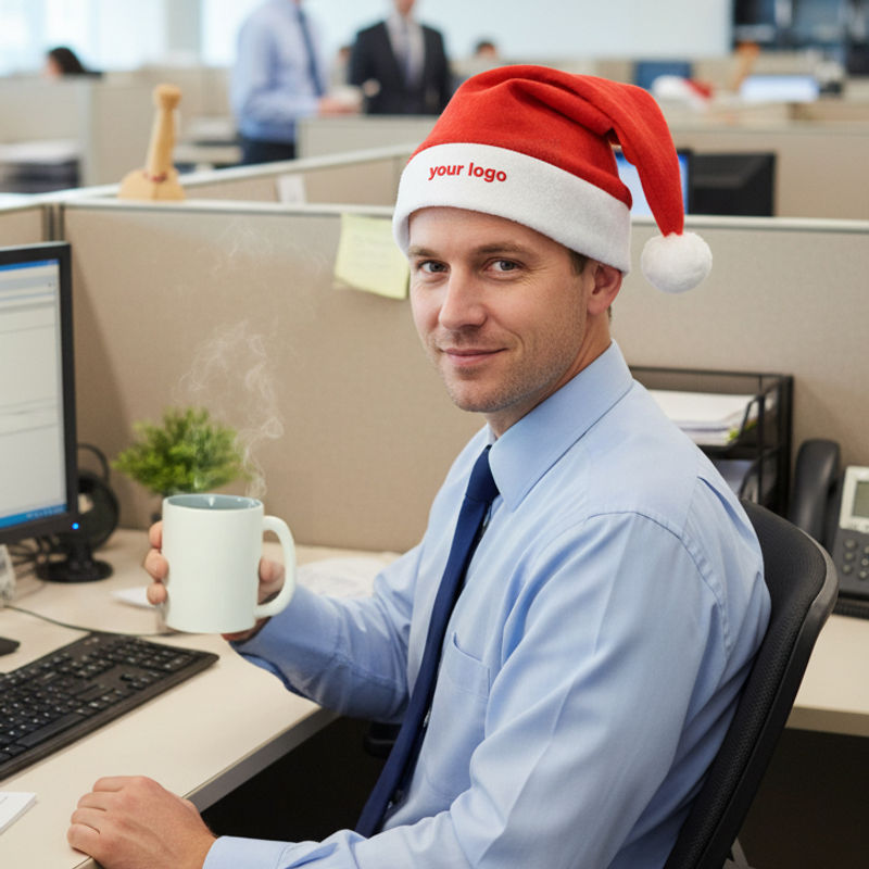 Bring some Christmas mood to your customers with this Christmas cap made of felt. We will print your logo on the cap by means of transfer print.