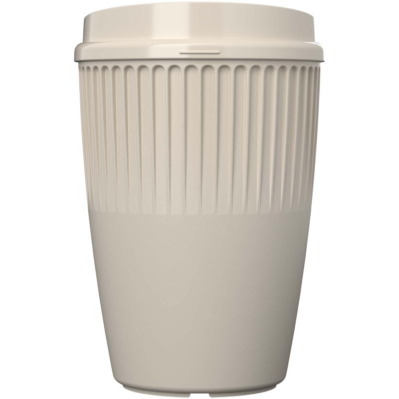 The Cirrus 350 ml tumbler is a sophisticated and stylish single-walled drinking vessel featuring insulating ridges for safe and comfortable handling. It has an elegant clip-on lid with an unobtrusive relief, providing a tactile method for locating the drinking spout. Both the lid and vessel are made of fully recyclable plastics. Enjoy your favourite hot beverages in both comfort and style.