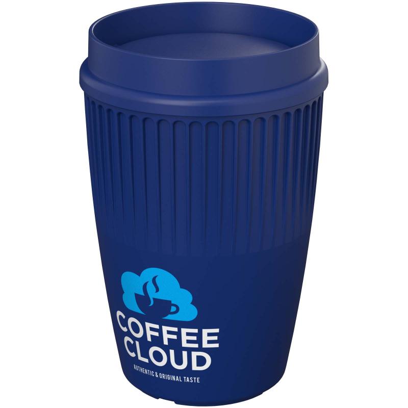 The Cirrus 350 ml tumbler with the unique 360° clip-on lid is a sophisticated and stylish single-walled drinking vessel featuring insulating ridges for safe and comfortable handling. The innovative 360° lid allows you to drink from any side of the cup, and enhances any drinking experience with a stronger aroma from your chosen beverage. Both the lid and vessel are made of fully recyclable plastics. Enjoy your favourite hot beverages in both comfort and style.
