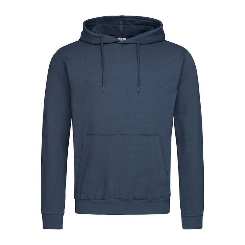 A durable ring-spun cotton-polyester-blend, midweight hooded sweatshirt for men, brushed inside with kangaroo pocket, elastic cuffs and waistband.