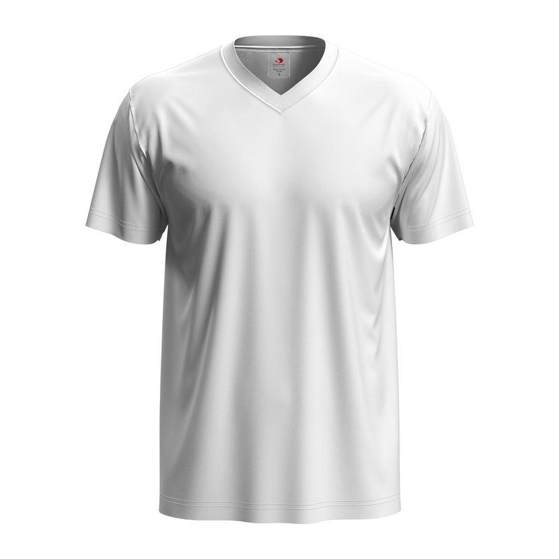 Classic V-neck style for men. Soft, without side seams and made of durable single jersey cotton.