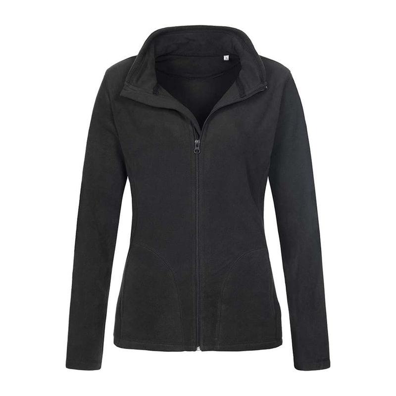 Lightweight and great heat-insulating properties, this women’s fleece jacket with stand-up collar made of breathable micro fleece makes a warm and soft intermediate layer.