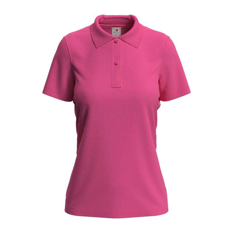 Soft single jersey polo shirt for women, with a pleasing piqué look, rib collar and 2 tone-on-tone buttons.