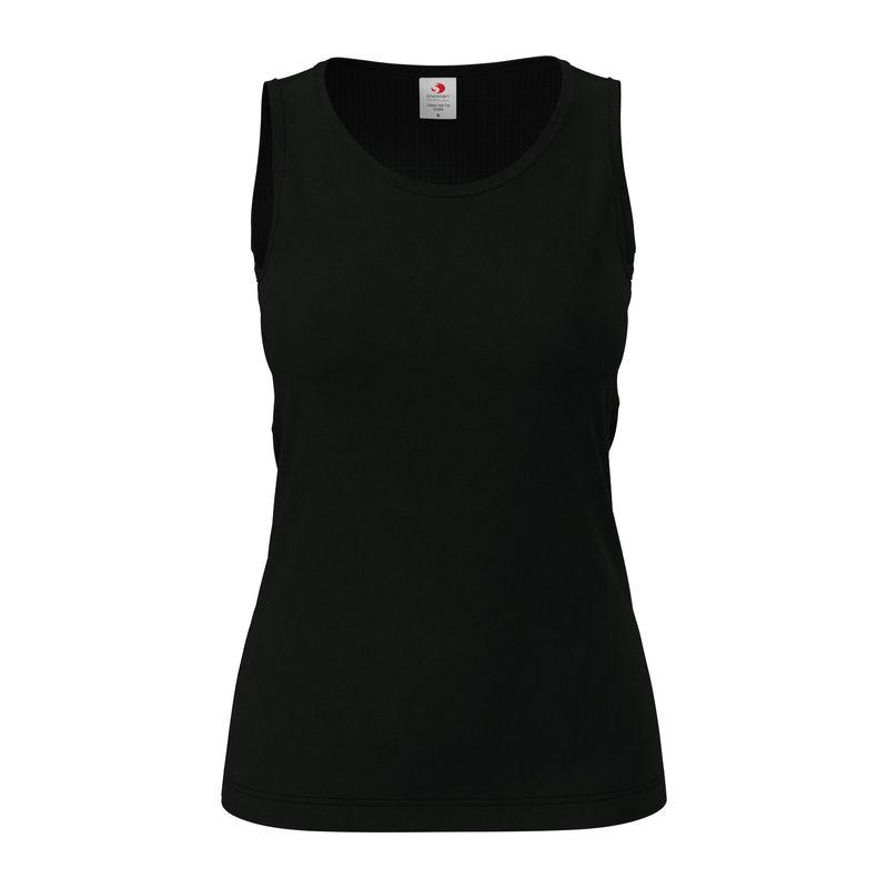 Soft tank top for women, with side seams, collar and arm holes with binding and made of durable single jersey cotton.