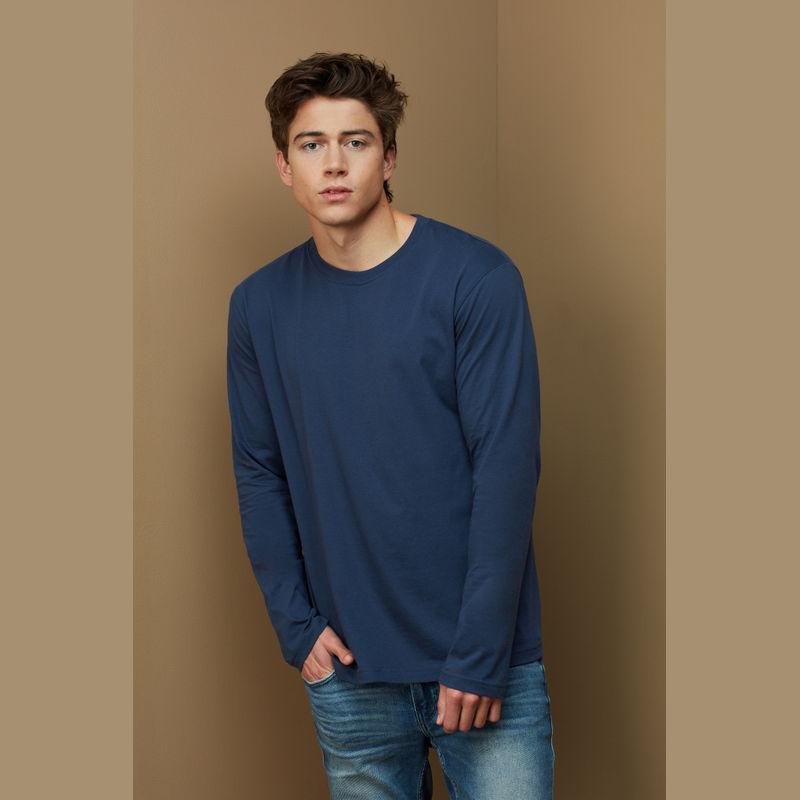 Soft, heavyweight long sleeve T-shirt for men, without side seams made of durable single jersey cotton.