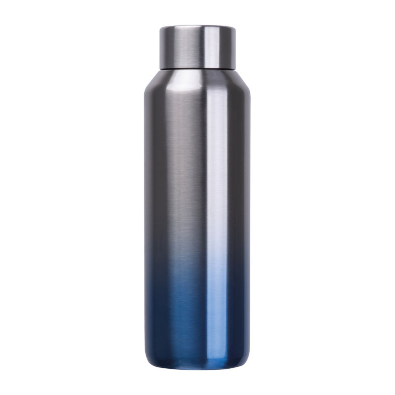 Double-walled stainless steel vacuum thermos drinking bottle with copper insulation and color gradient. It keeps beverages hot or cold for a long time and is leak-proof. Capacity 750 ml.