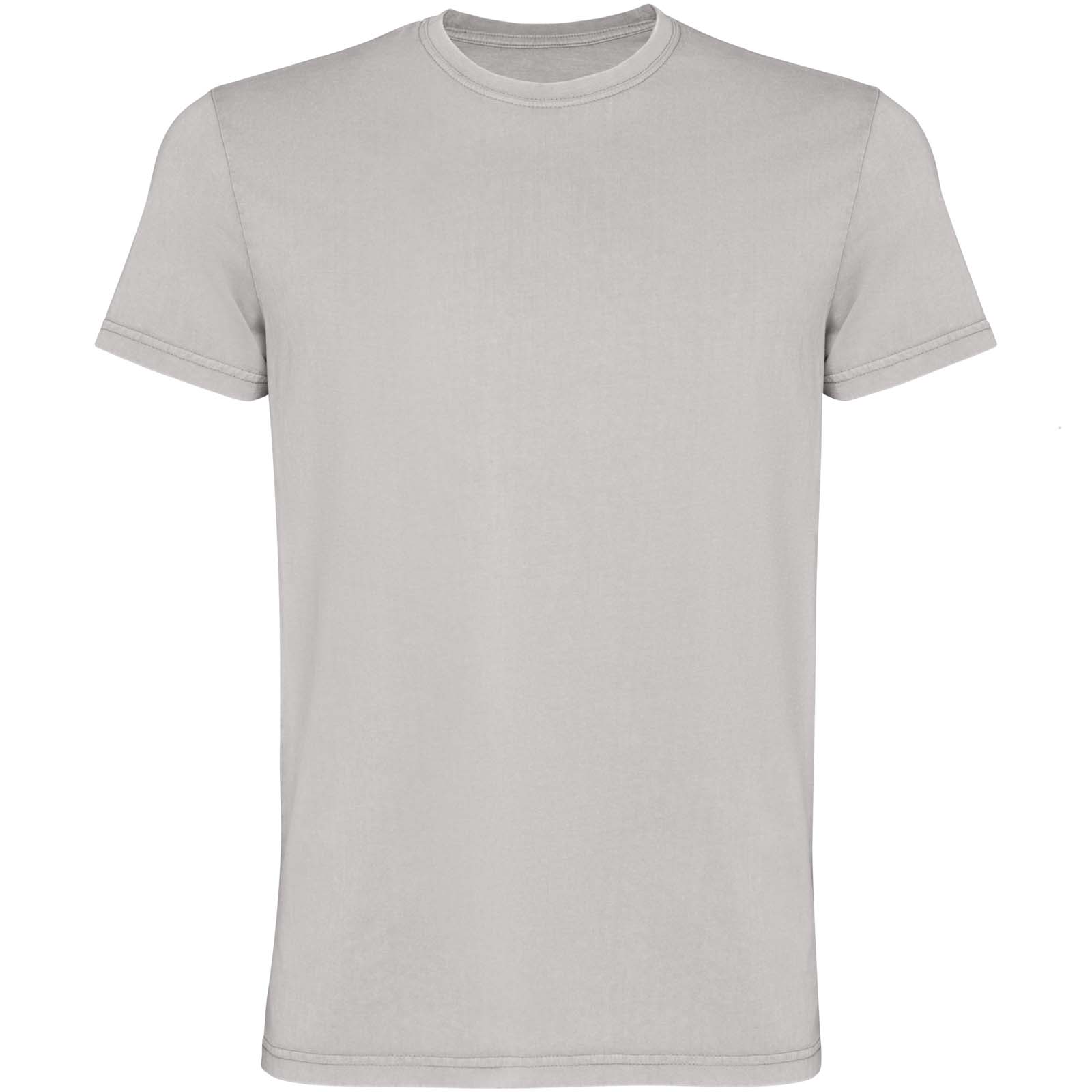 Short sleeve t-shirt for men. Acid-wash finish. 1x1 ribbed crew neck design. Tone-on-tone cover stitch with a polished finish.