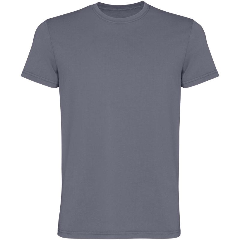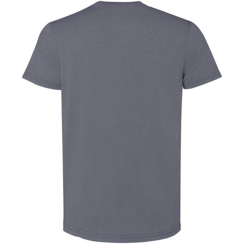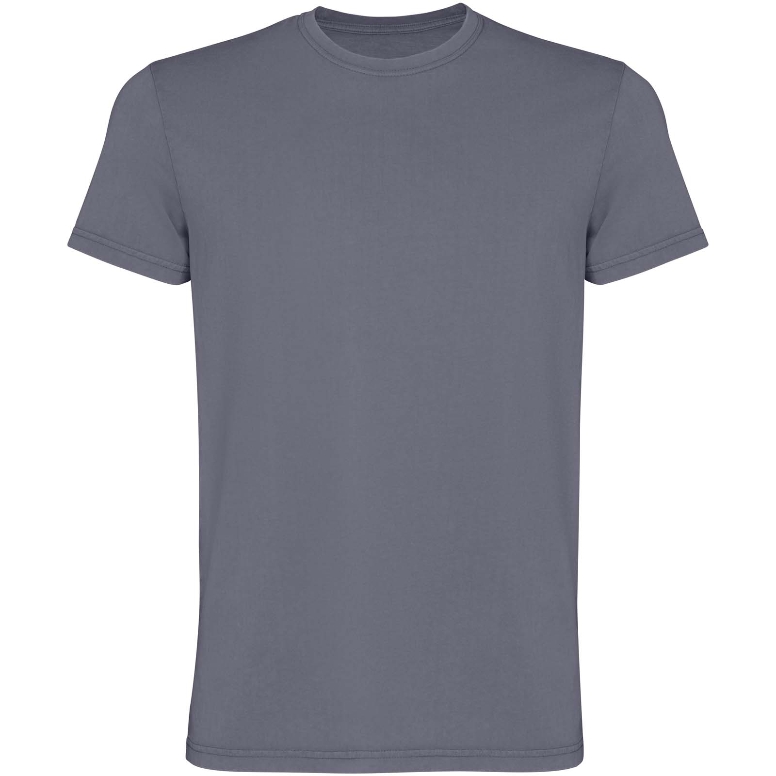 Short sleeve t-shirt for men. Acid-wash finish. 1x1 ribbed crew neck design. Tone-on-tone cover stitch with a polished finish.