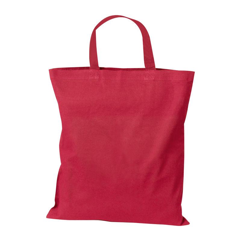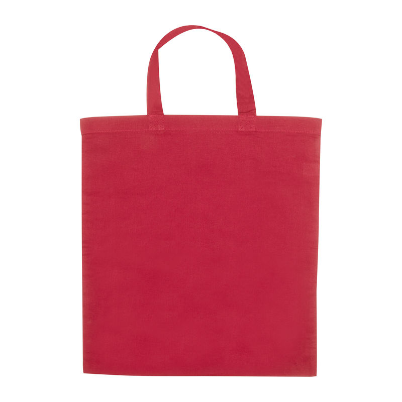 Eco-friendly cotton bag with short handles, in different colours and a particularly strong grammage of 140g/m². Your branding will be printed on one side.