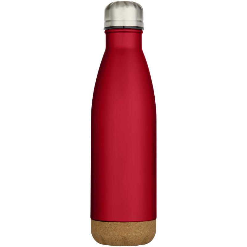 Vacuum insulated stainless steel water bottle with cork details at the bottom. The double-wall insulation keeps drinks hot for 12 hours and cold for 48 hours. Presented in a recycled cardboard gift box. Volume capacity: 500 ml.