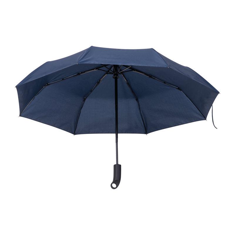 Compact CrisMa automatic pocket umbrella made of 190T pongee fabric (60 g/m²) with fiberglass ribs and stainless steel frame. The handle is made of soft-touch ABS with an integrated loop.