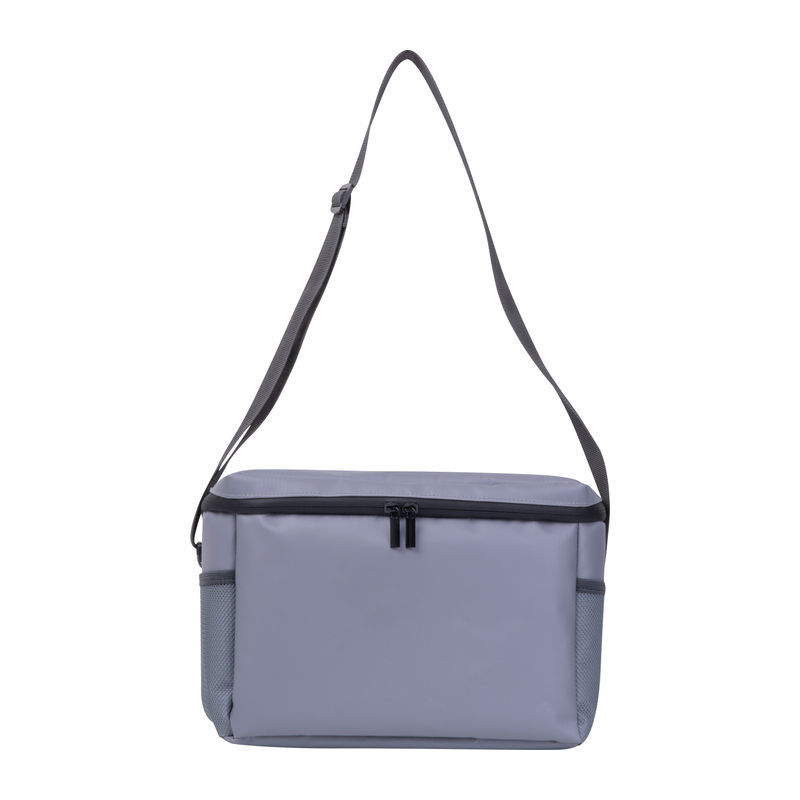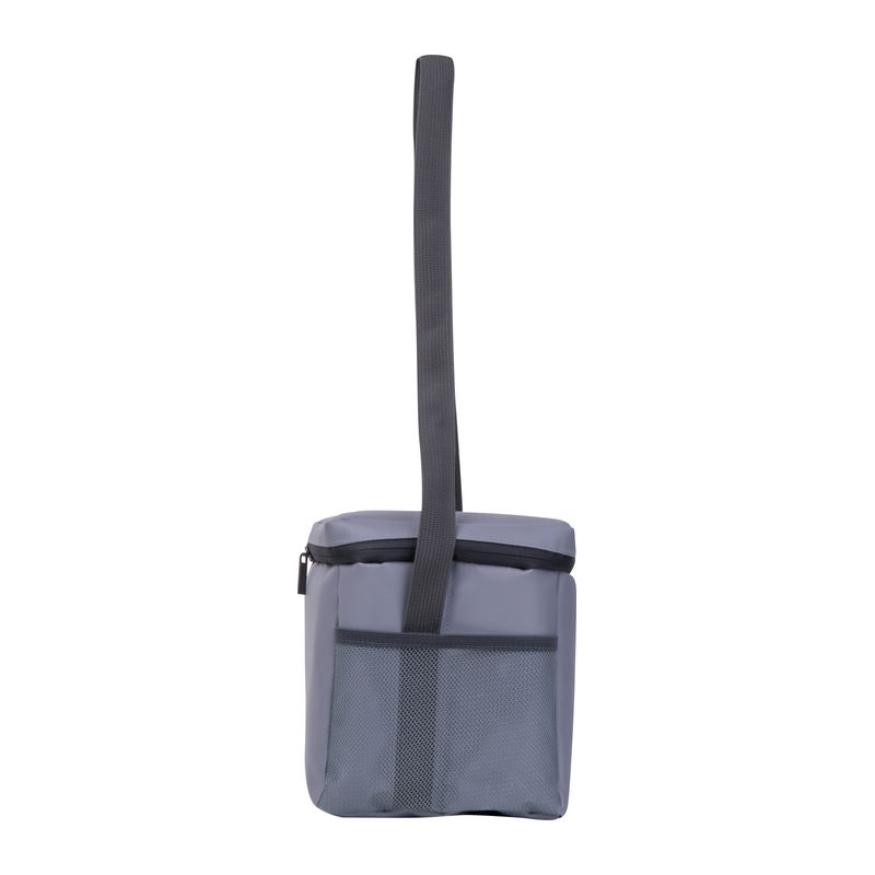 CrisMa cooler bag made of PVC with a waterproof exterior, 9-liter capacity, two mesh compartments, and an adjustable shoulder strap.