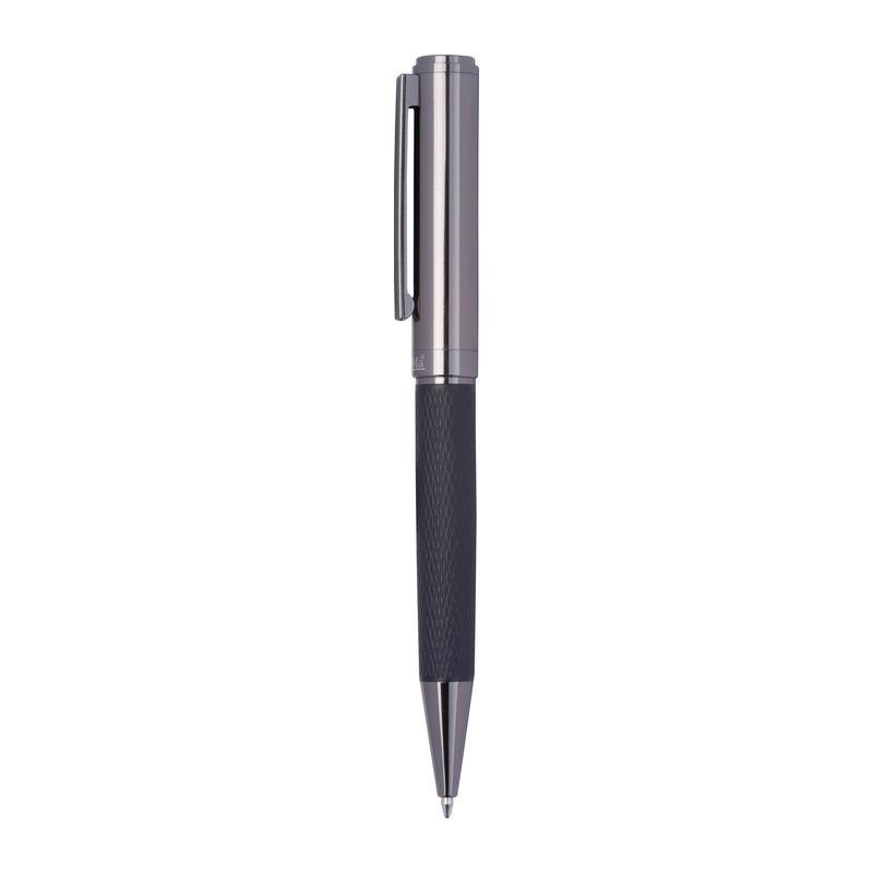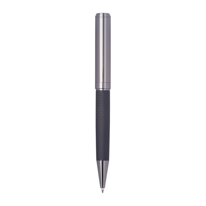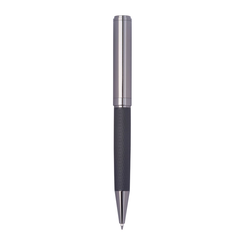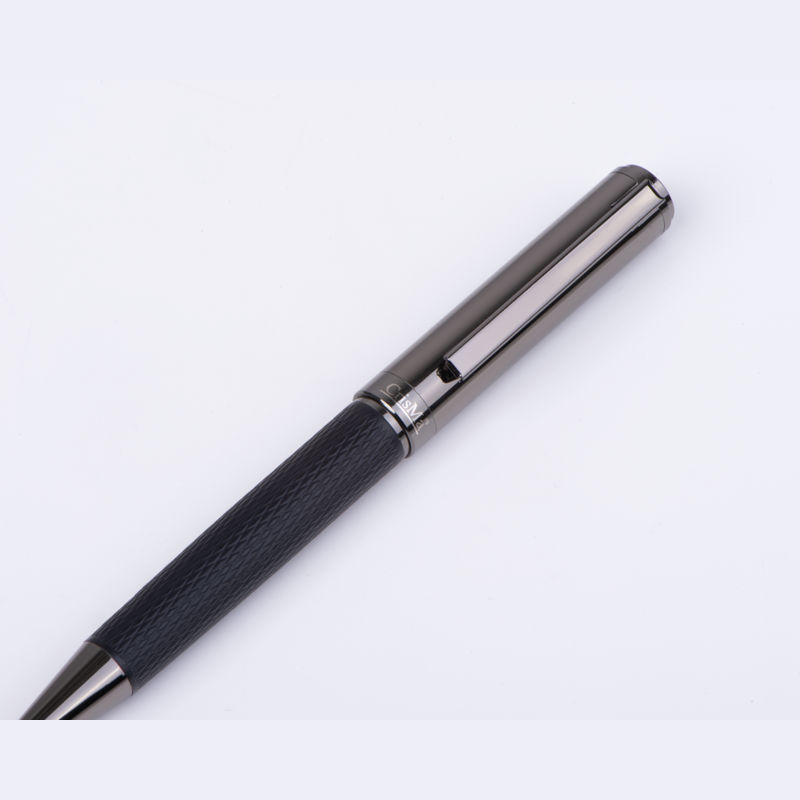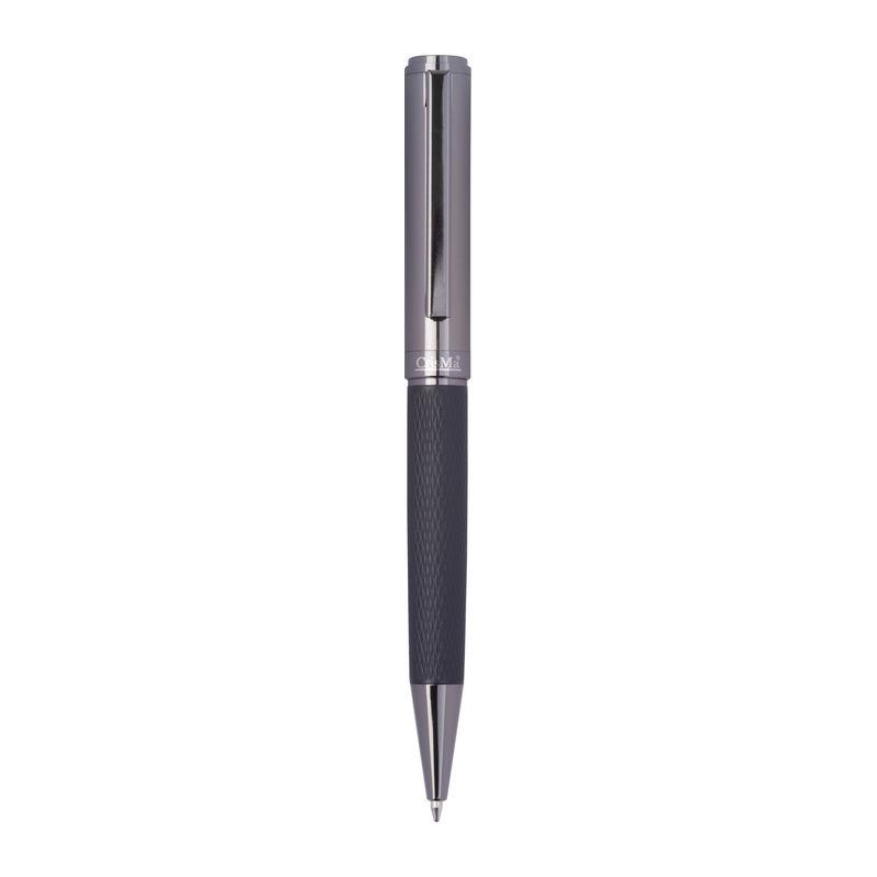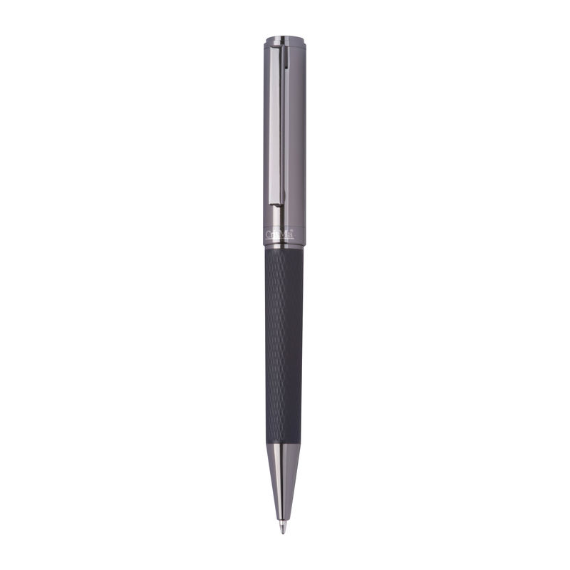 CrisMa metal ballpoint pen with patterned grip, blue ink, 1200 m writing length, small CrisMa logo under the clip, packed in a box with magnetic closure.