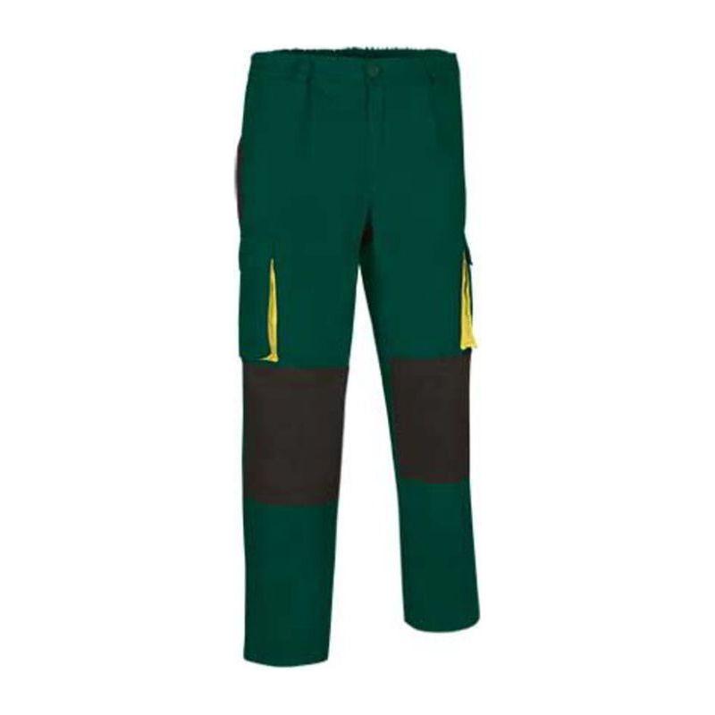 Trousers, 65% polyester, 35% cotton. 220 grs/m² twill fabric. 2 waist pockets. 1 back pocket. 2 lateral gusset flap pockets. Knee pad pockets. Button and zipper closure. 20 units per box: 1 size, 1 color. Individual bag.