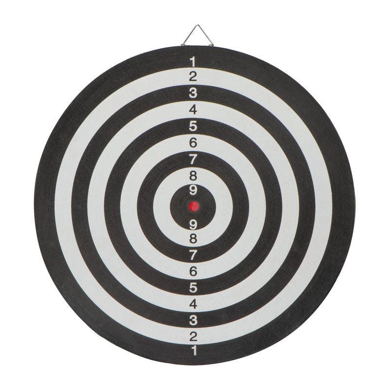 Double-sided dartboard with 6 darts and metal loop for fastening. We will print your logo in one field.