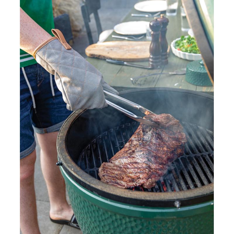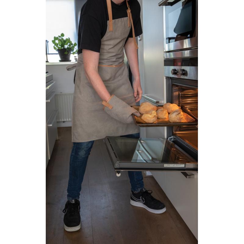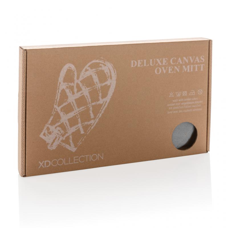 A handy companion in the kitchen, this quilted oven glove shields hands from hot objects. The separate thumb ensures a good grip, attached with decorative PU detail. Made with heavy quality 16oz. canvas. Supplied in a Kraft gift box. Machine wash at 30 degrees celsius with similar colours.