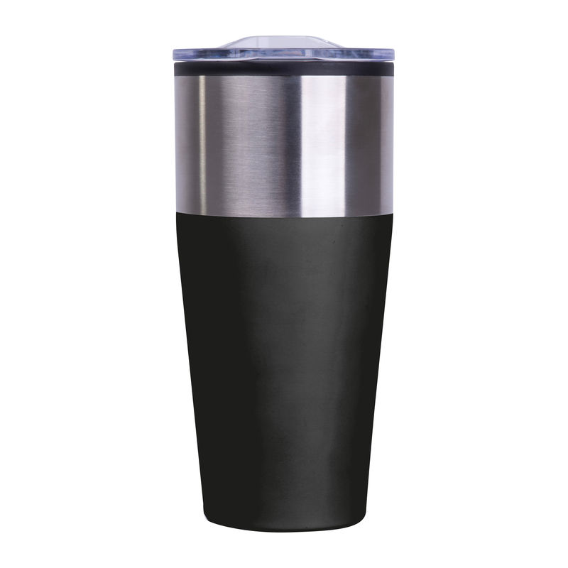 Double-walled 600 ml coffee thermo cup with a plastic inner core and stainless steel exterior. Keeps beverages hot or cold for longer and is also suitable for carbonated drinks.