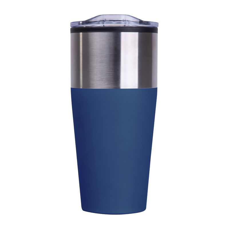 Double-walled 600 ml coffee thermo cup with a plastic inner core and stainless steel exterior. Keeps beverages hot or cold for longer and is also suitable for carbonated drinks.