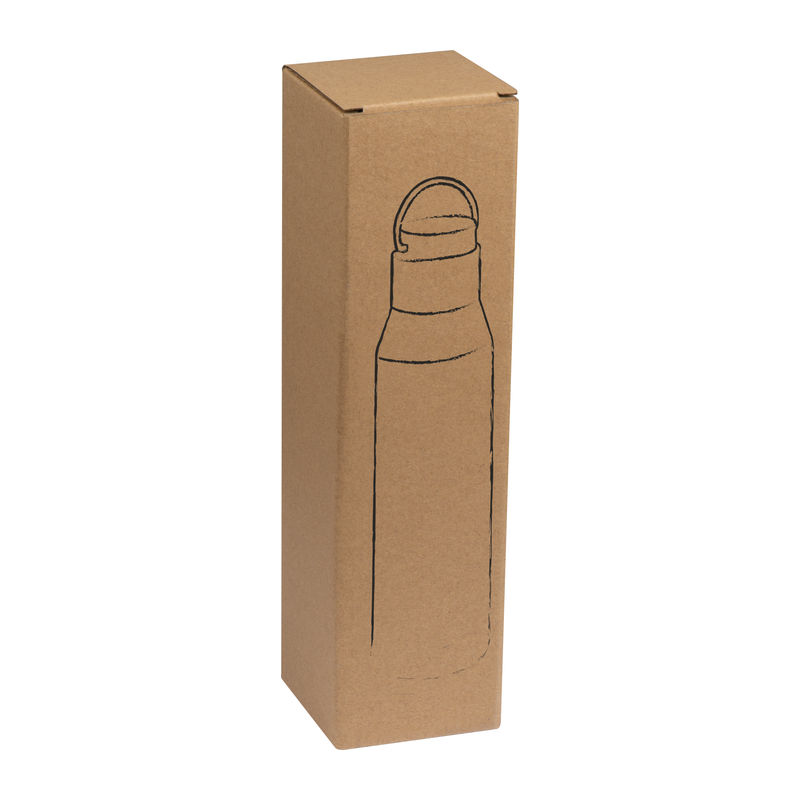 Drinking bottle made from recycled stainless steel with vacuum insulation, bamboo lid with handle and 550ml capacity. We will engrave your logo on the bottle.