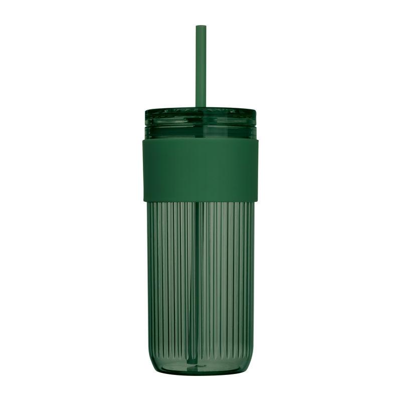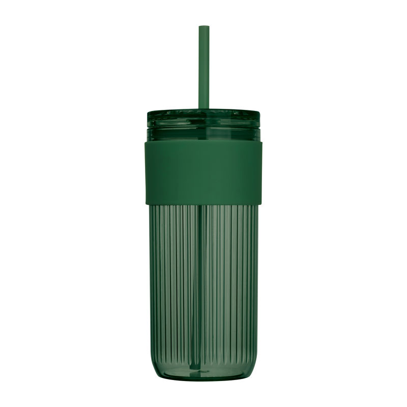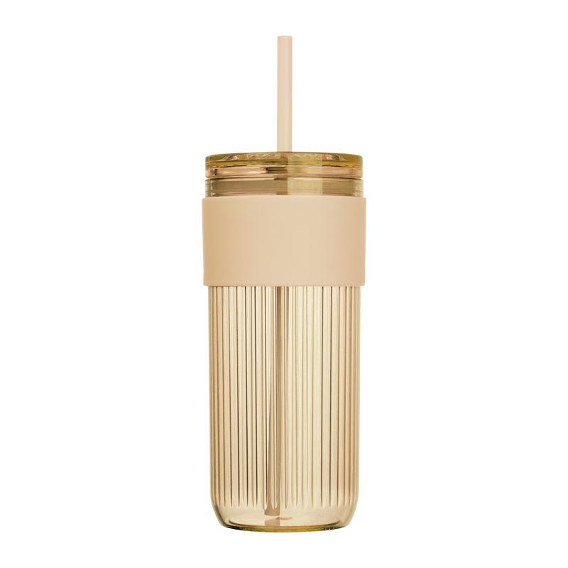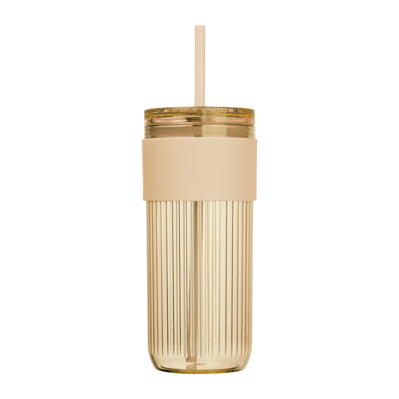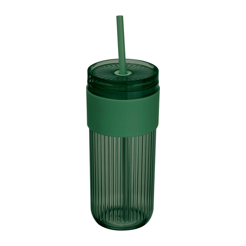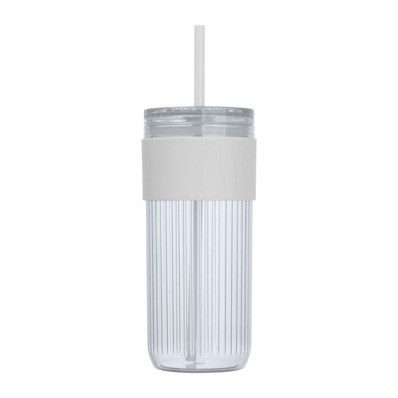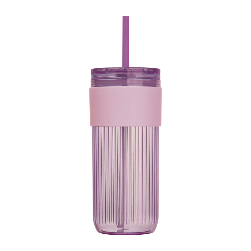 Plastic drinking cup with straw, reinforced grip zone, and 660ml capacity.