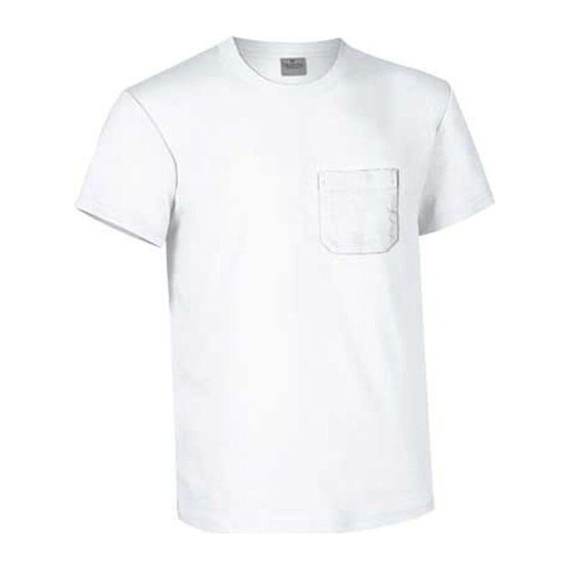 100% ring spun cotton. White melange: 85% cotton, 15% natural viscose. Grey melange: 98% cotton, 2% natural viscose. 165 grs/m2 single jersey. Ribbed round neck. Shoulder to shoulder reinforcement. Double stitching on neck, bottom and sleeves. Reinfo
